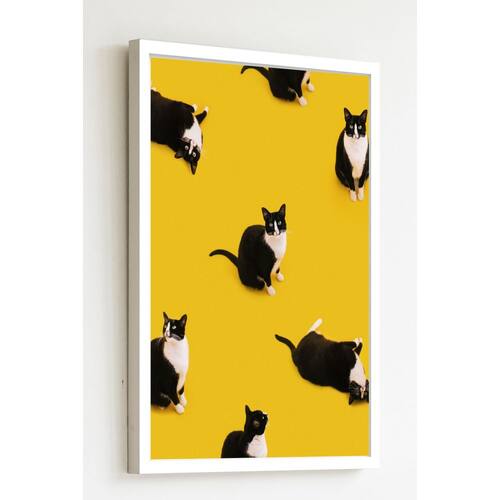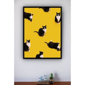 Quadro Decorativo Gatos Fundo Amarelo - 70x50cm - Cor: Moldura Preta