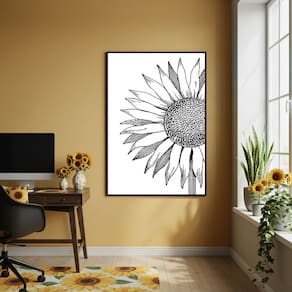 Quadro Decorativo Girassol Desenho - 70x50cm Mold Branca