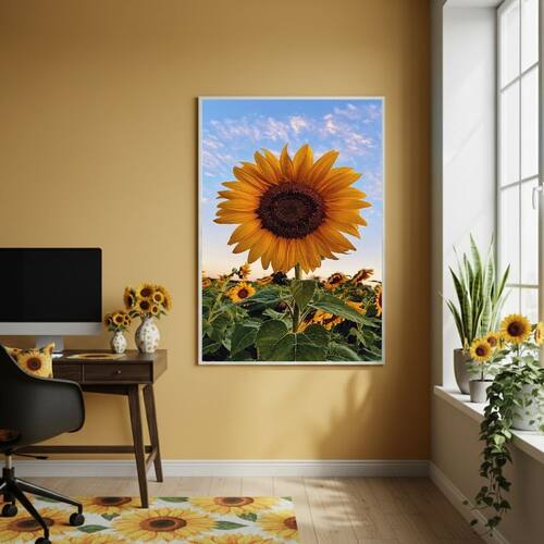 Quadro Decorativo Girassol Foto - 70x50cm Mold Branca