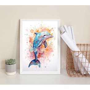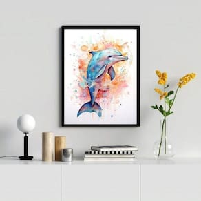 Quadro decorativo golfinho colorido- aquarela 24x18cm - com vidro Moldura: madeira branca Informações do produto tire todas as suas dúvidas no descritivo abaixo: decoração para quarto, sala, cozinha, escritório, área gourmet e muito mais. Chega de paredes vazias medidas - cada peça tem 24x18cm a5 . Material do papel - papel fotográfico brilhante de altíssima resolução acabamento - todos os quadros são acompanhados de vidro para proteção da imagem. - moldura em madeira maciça na cor preta ou branca conforme produto escolhido e pendurador . - os quadros são embalados de forma segura com plástico bolha com camada dupla de acordo com o tamanho dos quadros. Garantia - garantia de 3 meses. Meu quadro chegou. Como posso fixá-lo Você precisa apenas de um martelo e um prego, pois os quadros já vão acompanhados de penduradores. Esta é a forma mais indicada. Como posso limpar meu quadro A limpeza é feita como um móvel comum da sua casa. Apenas um pano seco ou espanador são suficientes para tal Ean: 7890574577809