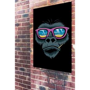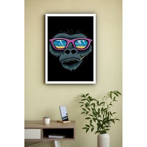 Quadro Decorativo Gorila Óculos Rosa - 70x50cm - Cor: Moldura Branca