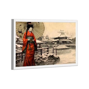 Quadro Decorativo Guerreira Japonesa Moldura Branca - Pequeno 60x40 -