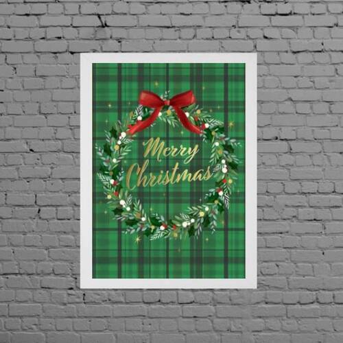 Quadro Decorativo Guirlanda De Natal Verde 33X24cm Branca