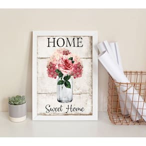 Quadro decorativo home sweet home- flores 24x18cm Moldura: madeira branca Informações do produto tire todas as suas dúvidas no descritivo abaixo: decoração para quarto, sala, cozinha, escritório, área gourmet e muito mais. Chega de paredes vazias medidas - cada peça tem 24x18cm a5 . Material do papel - papel fotográfico brilhante de altíssima resolução acabamento - todos os quadros são acompanhados de uma película de acetato para proteção da imagem. - os quadros são embalados de forma segura com plástico bolha com camada dupla de acordo com o tamanho dos quadros. Garantia - garantia de 3 meses. Meu quadro chegou. Como posso fixá-lo Você precisa apenas de um martelo e um prego, pois os quadros já vão acompanhados de penduradores. Esta é a forma mais indicada. Caso prefira, você pode utilizar uma fita dupla face neste caso, sugerimos de alta qualidade para evitar que descole e seu quadro caia . Como posso limpar meu quadro A limpeza é feita como um móvel comum da sua casa. Apenas um pano seco ou espanador são suficientes para tal Ean: 7893757980564