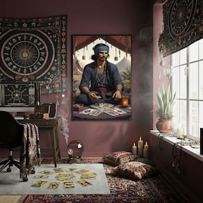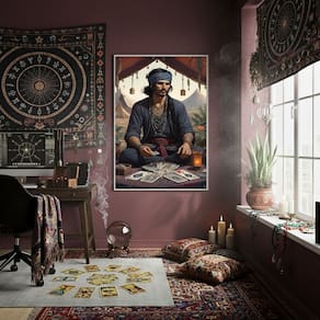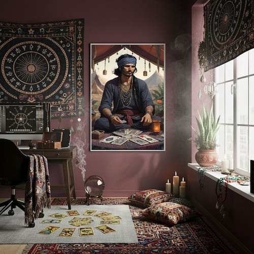 Quadro Decorativo Homem Cigano Com Tarot 70x50 Mold Preta