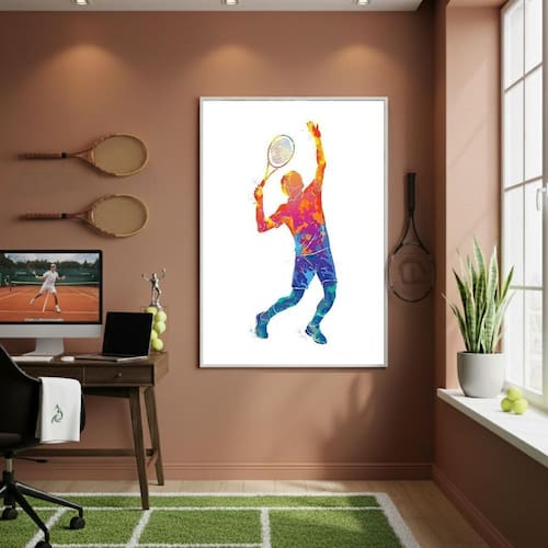 Quadro Decorativo Homem Jogando Tênis-70X50Cm Mold Branca