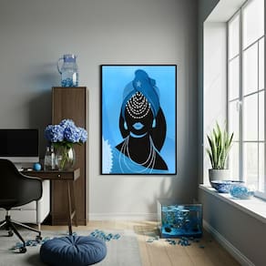 Quadro Decorativo Iemanjá - Orixá da Maternidade - 70x50cm - Cor: Moldura Preta