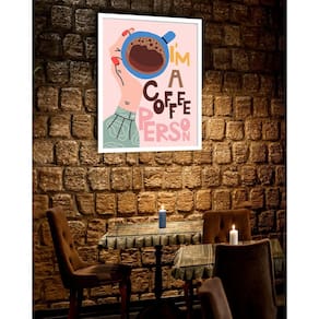 Quadro decorativo i'm a coffee person - 70x50cm Cor: moldura preta Informações do produto tire todas as suas dúvidas no descritivo abaixo: decoração para quarto, sala, cozinha, escritório, área gourmet e muito mais. Chega de paredes vazias medidas - cada peça tem 70x50cm . Material do papel - papel fotográfico brilhante de altíssima resolução acabamento - todos os quadros são acompanhados de vidro para proteção da imagem. - moldura em madeira maciça na cor preta ou branca conforme produto escolhido e pendurador. - os quadros são embalados de forma segura com plástico bolha com camada dupla de acordo com o tamanho dos quadros. - de 3 meses. Meu quadro chegou. Como posso fixá-lo Você precisa apenas de um martelo e um prego, pois os quadros já vão acompanhados de penduradores. Esta é a forma mais indicada. Como posso limpar meu quadro A limpeza é feita como um móvel comum da sua casa. Apenas um pano seco ou espanador são suficientes para tal Marca: Não Informado