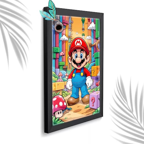 Descrição do produto: Traga a magia do mundo dos jogos para o quarto ou sala do seu filho com este quadro decorativo infantil do Mario Bross! Com dimensões de 33x25 cm, ele é perfeito para adicionar um toque divertido e colorido ao ambiente. Feito com papel de alta qualidade e protegido por vidro, este quadro garante durabilidade e um acabamento vibrante. Ideal para pequenos fãs do Mario e amantes de decoração temática. Benefícios:Durabilidade: Moldura resistente e vidro que protege contra poeira e danosEstilo: Adiciona beleza e personalidade ao seu espaço, criando um ambiente perfeito.Facilidade: Pronto para pendurar, sem necessidade de montagem Características:01 Peça(s)Com vidro.Moldura feita de madeira maciça disponíveis nas cores:Preta, Branca, Rosa e Azul TurquesaImagem A4 de alta qualidade protegida contra umidade. Dimensões:Moldura: 25 cm L. 33,7 cm AlturaImagem: 21 cm L. 30 cm AlturaVidro: 0,3 mm Espessura Marca: Estação Vest