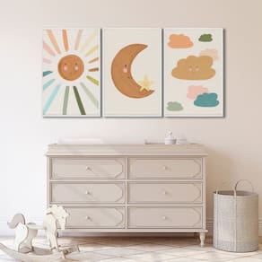 Quadro Decorativo Infantil O Sol, A Lua e as Nuvens com 3 Telas cm de Parede para Quarto, Sala, Brinquedoteca, Escola, Creche, Sala de Jogos, Hall, Salão de Festas.Especificações Técnicas:Modelo: Sol, Lua e Nuvens;Material da Imagem: Papel premium fotográfico de alta qualidade;Material da Moldura: Madeira de reflorestamento revestida;Espessura da Moldura: 2,7cm de profundidade e 1,5cm frontal;Medidas: cm;Acabamento: Fita Kraft;Acompanha: Suporte de serrilha para quadros e parafusos.Transforme seu espaço com elegância e sofisticação! Não perca a oportunidade de adquirir o exclusivo Quadro Decorativo Infantil O Sol, A Lua e as Nuvens com 3 Telas a um preço incrível! Acompanha Fixação para Parede: Sim Ambiente Principal: Sala de Estar Cor: Branco Cor do Produto: Branco Espessura: 20 mm Itens Inclusos: 1 Quadro com 3 Telas Marca: ARTE PRÓPRIA Material Principal: Madeira Maciça Medida de Cada Item: 60cm x 90cm Origem do Produto: Nacional Peso: 15 kg Possui Paspatur: Não Possui Vidro: Não Tema da Estampa: Infantil Tipo de Quadro: Kit de quadros Marca: ARTE PRÓPRIA