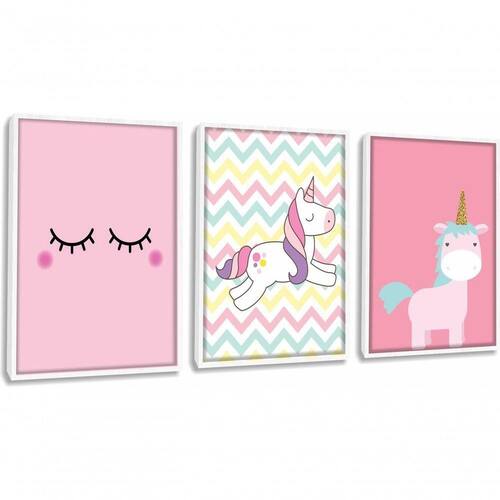 Quadro Decorativo Infantil Unicórnio Com Moldura Branco