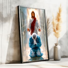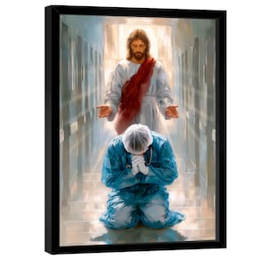Quadro Decorativo Jesus Abençoando o Médico Moldura Preta e Vidro - 84x54cm -