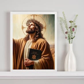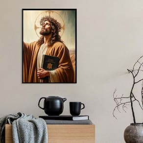 Quadro decorativo jesus com bíblia 45x34cm Moldura: madeira preta Informações do produto tire todas as suas dúvidas no descritivo abaixo: decoração para quarto, sala, cozinha, escritório, área gourmet e muito mais. Chega de paredes vazias. Medidas - cada peça tem 45x34cm a3 . Material do papel - papel fotográfico brilhante de altíssima resolução acabamento - todos os quadros são acompanhados de uma película de acetato para proteção da imagem. - os quadros são embalados de forma segura com plástico bolha com camada dupla de acordo com o tamanho dos quadros. Garantia - garantia de 3 meses. Meu quadro chegou. Como posso fixá-lo Você precisa apenas de um martelo e um prego, pois os quadros já vão acompanhados de penduradores. Esta é a forma mais indicada. Caso prefira, você pode utilizar uma fita dupla face neste caso, sugerimos de alta qualidade para evitar que descole e seu quadro caia . Como posso limpar meu quadro A limpeza é feita como um móvel comum da sua casa. Apenas um pano seco ou espanador são suficientes para tal