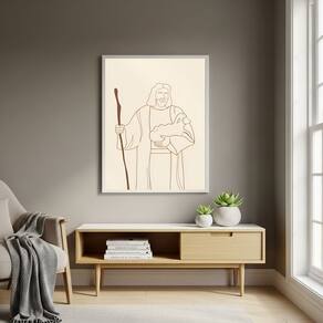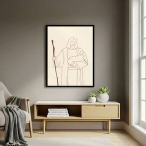 Quadro Decorativo Jesus Cristo com Cajado - 70x50cm - Cor: Moldura Preta