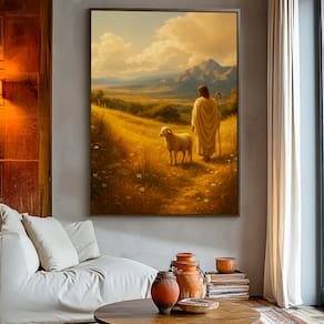 Quadro Decorativo Jesus e Cordeiro no Pasto Moldura Preta - 118x78cm -