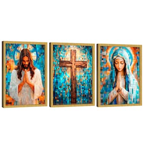 Quadro Decorativo Jesus e Maria em Grid Art Moldura Preta - 60x40cm -