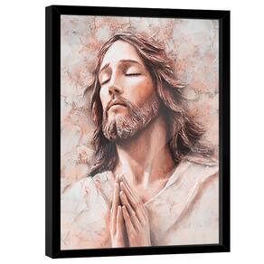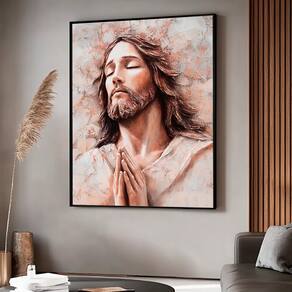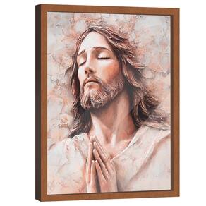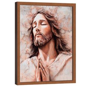 Quadro Decorativo Jesus em Tons Suaves e Claros Moldura Madeira - 84x54cm -