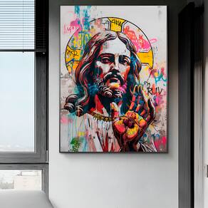 Quadro Decorativo Jesus Grafite Borda Infinita - 84x54cm -