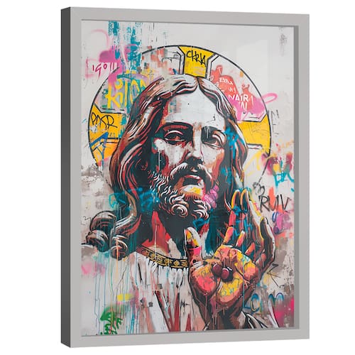 Quadro Decorativo Jesus Grafite Moldura Branca e Vidro - 150x100cm -