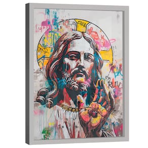 Quadro Decorativo Jesus Grafite Moldura Preta - 150x100cm -