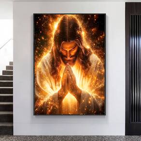 Quadro Decorativo Jesus Luz Da Graça Variação Moldura Dourada - 60x40cm -