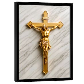Quadro Decorativo Jesus na Cruz Dourado Moldura Dourada - 84x54cm -