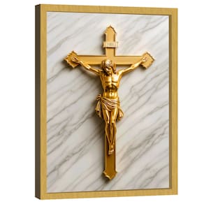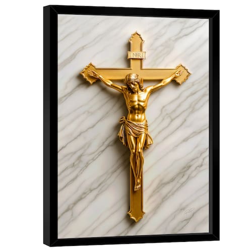 Quadro Decorativo Jesus na Cruz Dourado Moldura Preta - 84x54cm -