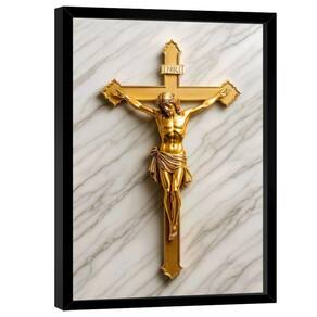 Quadro Decorativo Jesus Na Cruz Dourado Quadro Decorativo Jesus na Cruz Dourado Moldura Preta - 84x54cm - Especificações