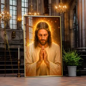 Quadro Decorativo Jesus Orando Moldura Preta - 84x54cm -
