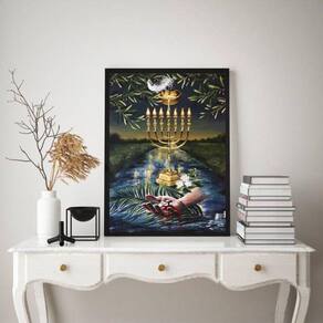 Características técnicas: - Título: Quadro Decorativo Arte Judaísmo 45X34Cm - Medidas: 45x34cm A3 - Material do papel: Papel fotográfico brilhante de altíssima resolução - Moldura: Madeira branca - Acompanha película de acetato para proteção da imagem - Fixação: Penduradores já inclusos, também pode ser utilizado fita dupla face de alta qualidade - Limpeza: Pano seco ou espanador Ean: 7899592856118