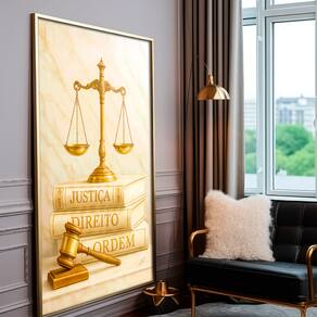 Quadro Decorativo Justiça, Direito e Ordem Moldura Dourada - 84x54cm -