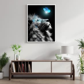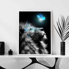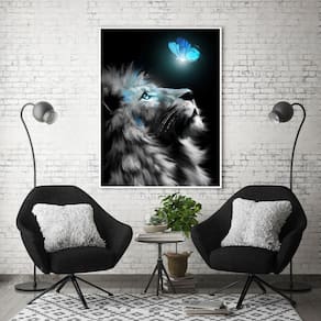 Prepara-se para transformar seu espaço com nosso quadro decorativo de leão, uma peça única que é ideal para quem curte decoração minimalista para sala de estar, quarto ou até mesmo para entrada de hall e escritório. A combinação do leão com a borboleta vibrante é como força e beleza dançando juntas. E o melhor: o nosso quadro com leão olhando para a borboleta é feito com materiais de alta qualidade e com entrega rápida.