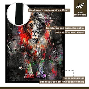 Descubra a força e a beleza da natureza com nosso Quadro Decorativo de Leão! Com pinceladas e cores ousadas, este quadro captura a atenção em qualquer ambiente, seja na sala de estar, quarto ou hall de entrada. Ideal para quem ama decoração moderna e busca adicionar um toque de cor e poder ao espaço. Para os amantes de quadros de animais, este é perfeito para dar vida às suas paredes e trazer uma vibração única à sua casa. Não perca a chance de transformar sua decoração com esta peça incrível!