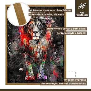 Descubra a força e a beleza da natureza com nosso Quadro Decorativo de Leão! Com pinceladas e cores ousadas, este quadro captura a atenção em qualquer ambiente, seja na sala de estar, quarto ou hall de entrada. Ideal para quem ama decoração moderna e busca adicionar um toque de cor e poder ao espaço. Para os amantes de quadros de animais, este é perfeito para dar vida às suas paredes e trazer uma vibração única à sua casa. Não perca a chance de transformar sua decoração com esta peça incrível!