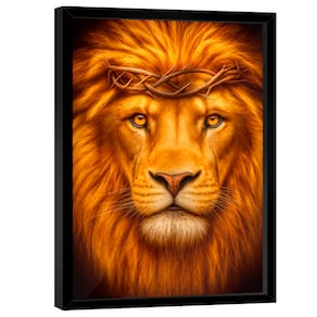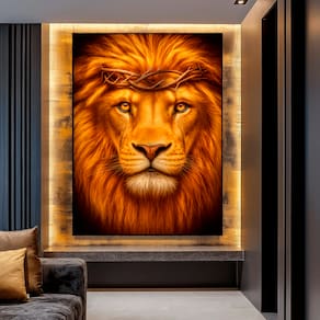Quadro Decorativo Leão Celestial Moldura Preta e Vidro - 118x78cm -