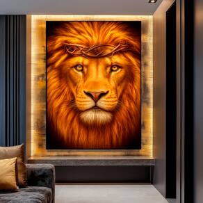 Quadro Decorativo Leão Celestial Moldura Preta e Vidro - 150x100cm -