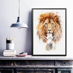 Quadro decorativo leão com cordeiro aquarela 45x34cm Moldura: madeira branca Informações do produto tire todas as suas dúvidas no descritivo abaixo: decoração para quarto, sala, cozinha, escritório, área gourmet e muito mais. Chega de paredes vazias. Medidas - cada peça tem 45x34cm a3 . Material do papel - papel fotográfico brilhante de altíssima resolução acabamento - todos os quadros são acompanhados de uma película de acetato para proteção da imagem. - os quadros são embalados de forma segura com plástico bolha com camada dupla de acordo com o tamanho dos quadros. Garantia - garantia de 3 meses. Meu quadro chegou. Como posso fixá-lo Você precisa apenas de um martelo e um prego, pois os quadros já vão acompanhados de penduradores. Esta é a forma mais indicada. Caso prefira, você pode utilizar uma fita dupla face neste caso, sugerimos de alta qualidade para evitar que descole e seu quadro caia . Como posso limpar meu quadro A limpeza é feita como um móvel comum da sua casa. Apenas um pano seco ou espanador são suficientes para tal Ean: 7898429060537