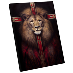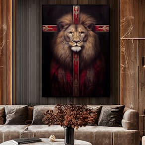 Quadro Decorativo Leão Cruz Vermelha Borda Infinita - 84x54cm -