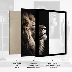 Quadro Decorativo Leão da Fé Sala Moldura Branca Cx Alta 40x60