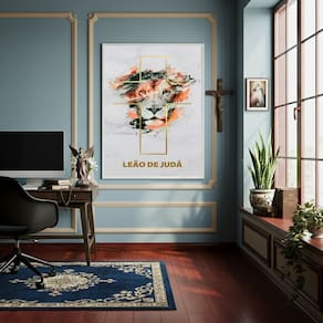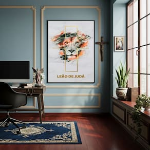 Quadro Decorativo Leão da tribo de Judá - 70x50cm - Cor: Moldura Preta