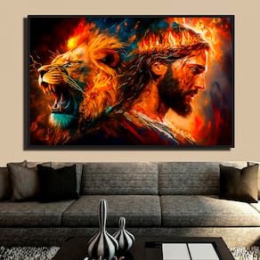 Quadro Decorativo Leão de Judá e Cristo Moldura Preta - 150x100cm -