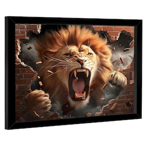 Quadro Decorativo Leão Destruindo a Parede Moldura Preta - 180x105cm -