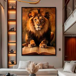 Quadro Decorativo Leão e Bíblia Borda Infinita - 60x40cm -