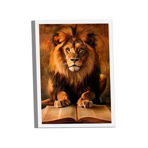 Quadro Decorativo Leão e Bíblia Moldura Preta - 118x78cm -