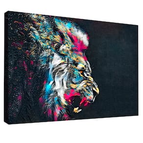 Quadro Decorativo Leão Estilo Pintura Moldura Preta - 84x54cm -