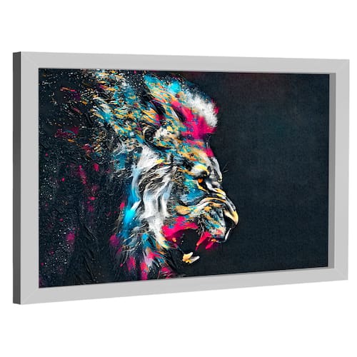 Quadro Decorativo Leão Estilo Pintura Moldura Branca - 84x54cm -