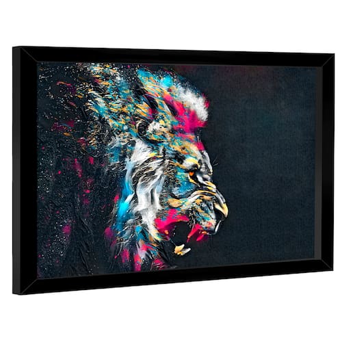 Quadro Decorativo Leão Estilo Pintura Moldura Preta - 84x54cm -