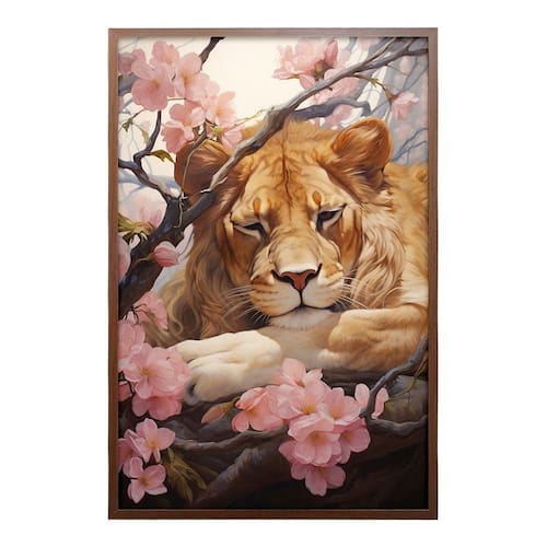 Quadro Decorativo Leão Flor Moldura Cx Alta 100x66