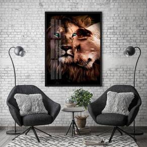 Que tal trazer um toque de paixão e majestade ao seu ambiente com nosso quadro decorativo? Se você é apaixonado por decoração com quadros de animais, o quadro Leão com Leoa é a escolha ideal. Dê um UP na decoração do hall de entrada, quarto ou sala com esta obra que transmite força, união e amor. Feito com materiais de alta qualidade, o quadro oferece durabilidade e tem uma entrega rápida e segura. Transforme seu espaço com um lembrete diário das conexões que compartilhamos.
