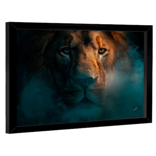 Quadro Decorativo Leão na Fumaça Moldura Preta - 118x78cm -